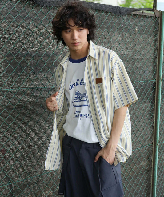 HOOK -original- 古着風ストライプ総柄半袖ビッグシャツ