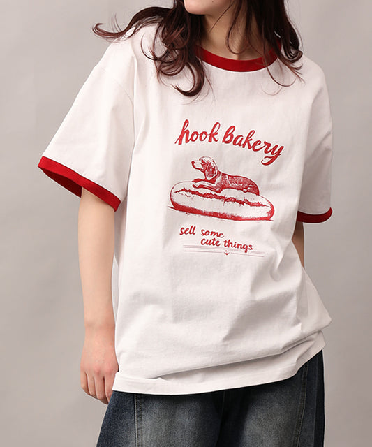 HOOK -original- 「HOOK BAKERY」シリーズ ヴィンテージ風犬プリントロンTEE