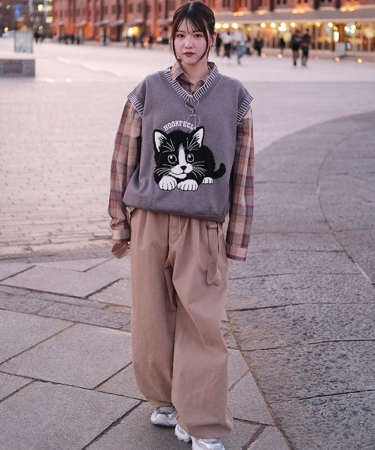 HOOK -original- 猫イラストステッチニットベスト