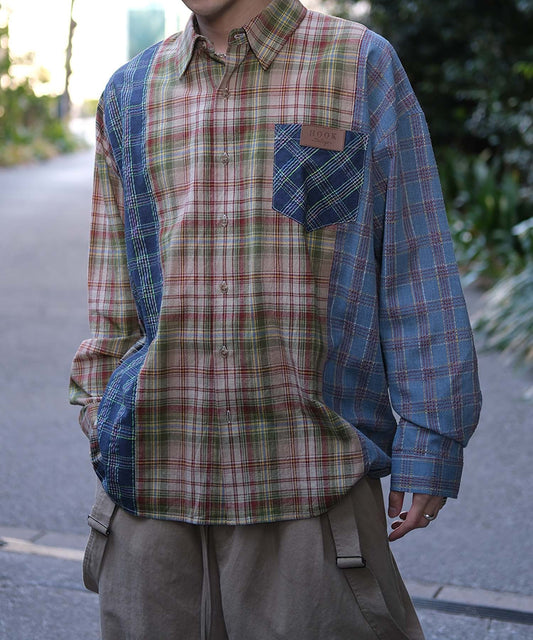 HOOK -original- 古着風チェック柄マルチ切り替えビッグシャツ