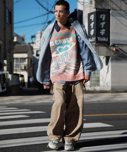 【HOOK -original-】ボロボロのハート総柄クレイジーステッチカーディガン