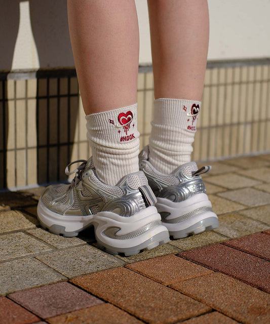 HOOK -original- メルティハート刺繍リブハイソックス