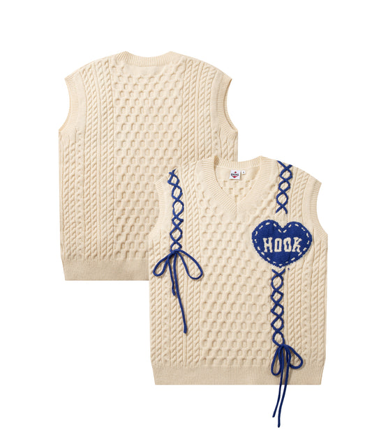 【HOOK -original-】ハートパッチ編み上げニットベスト