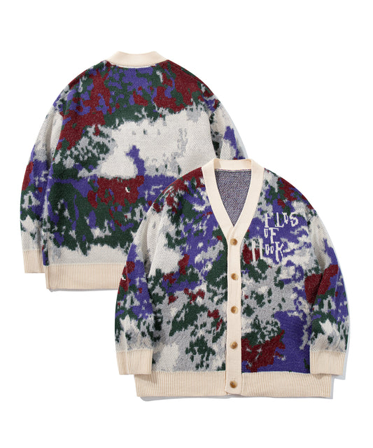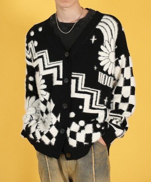 HOOK -original- 抽象模様 部分シャギーニットカーディガン