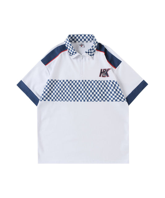 【HOOK -original- 】レーシング風ブロックチェック切り替え半袖ハーフジップ
