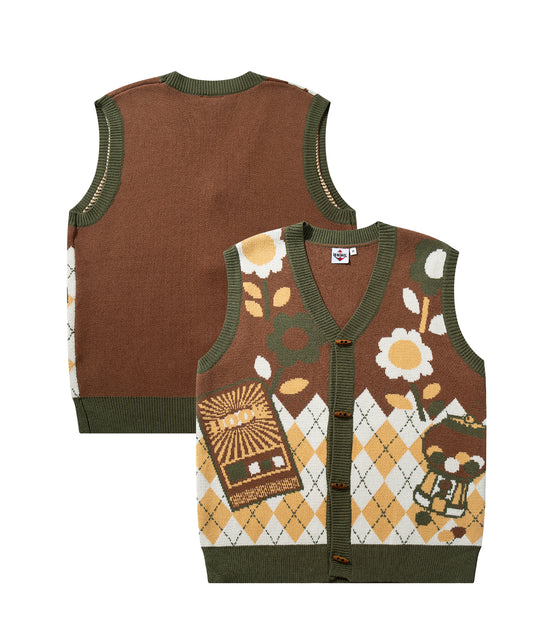 【HOOK -original-】「レトロの思い出」アーガイル柄前開きニットベスト