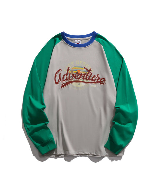 【HOOK -original- 】アメカジヴィンテージ風イラストプリント配色袖切り替えリンガーロングTEE
