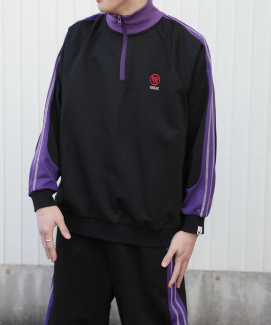 【HOOK -original-】配色ワンポイント刺繍飾りステッチサイドラインハーフジップ セットアップ可能