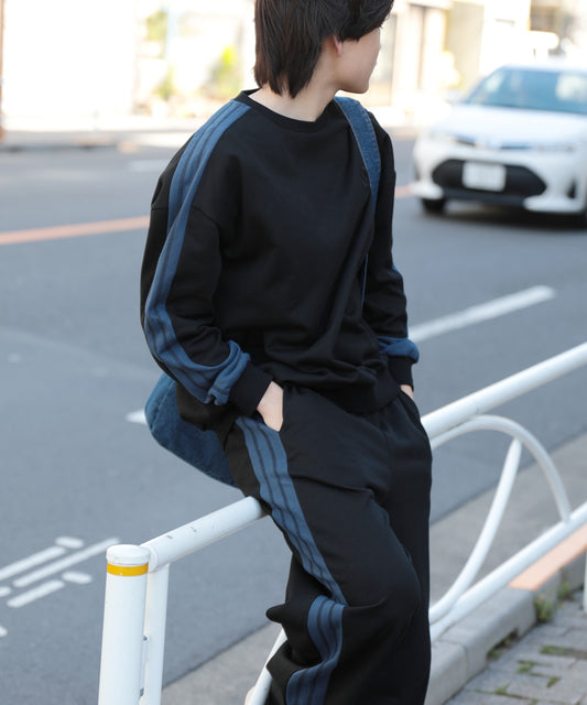 【HOOK -original-】配色ワンポイント刺繍飾りステッチサイドラインスウェット セットアップ可能