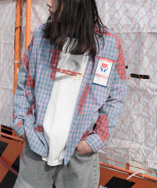 【HOOK -original-】配色タイダイ染めチェック柄長袖シャツ