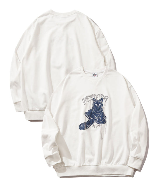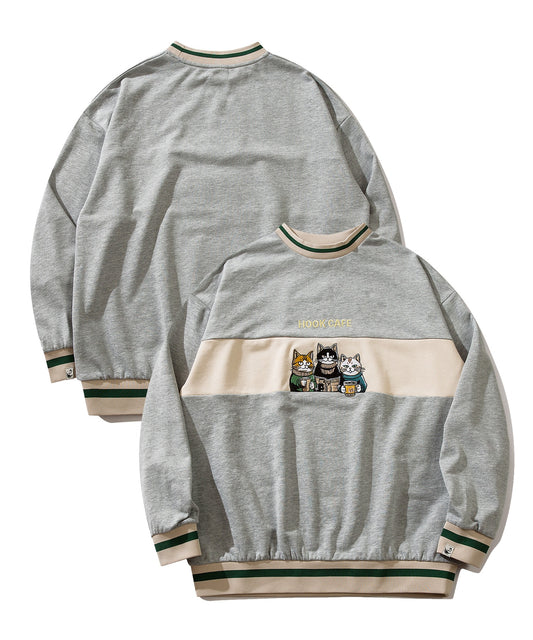 【HOOK -original- 】ニャンコカフェ~総刺繍バイカラー切り替えスウェット