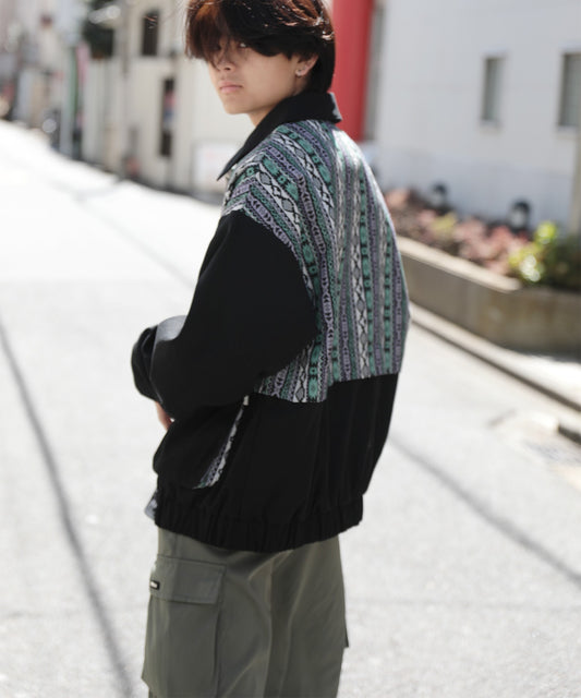 【HOOK -original-】古着風幾何学模様ジャカード切り替え2WAYカラーコーチジャケット