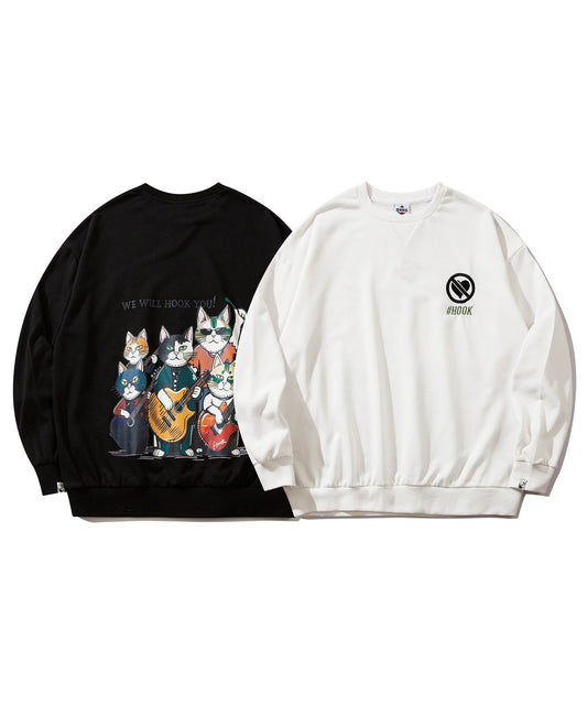 【HOOK -original- 】ワンポイント刺繍ネコイラストバックプリントスウェット