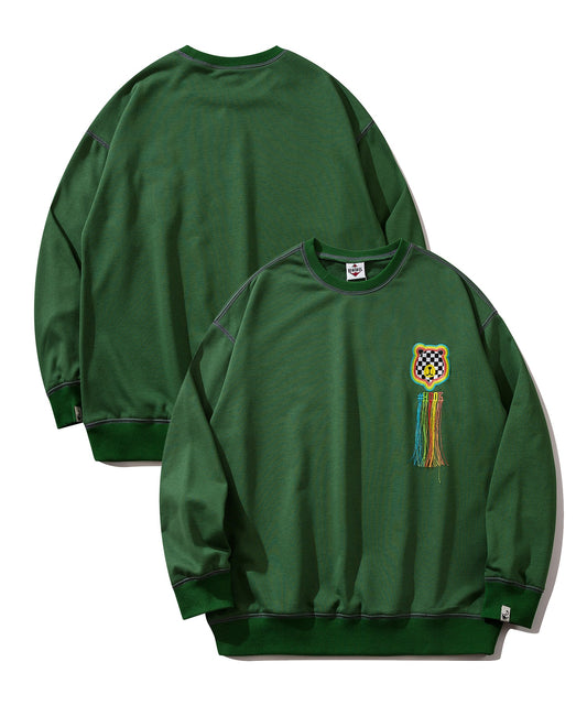 【HOOK -original-】ブロックベアワッペン刺繍レインボーフリンジ飾りステッチスウェット