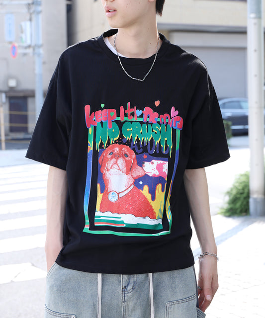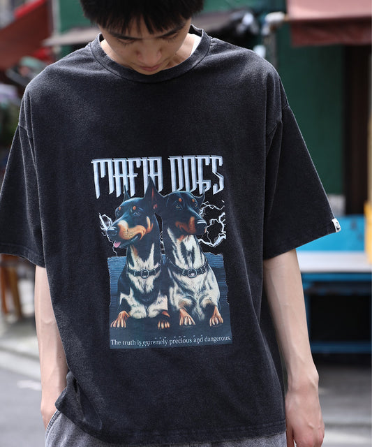 【HOOK -original- 】マフィアわんこプリントウォッシュ半袖TEE