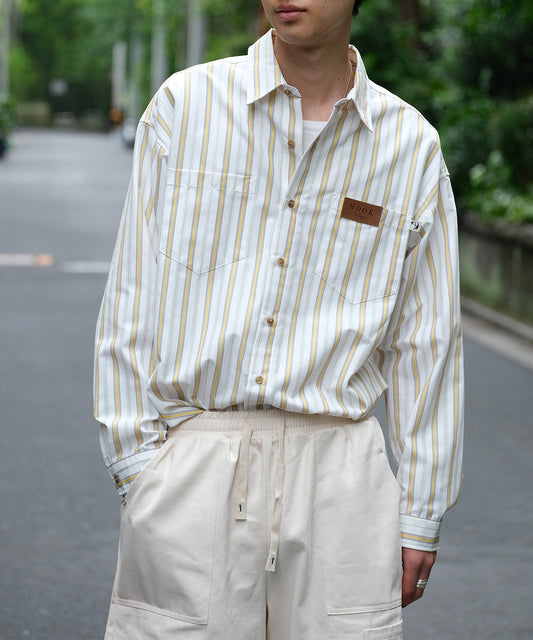 【HOOK -original-】古着風ストライプ総柄ビッグシャツ