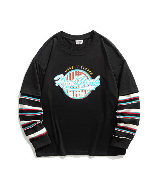 【HOOK -original- 】アメカジロゴプリントボーダー袖切り替えロングTEE