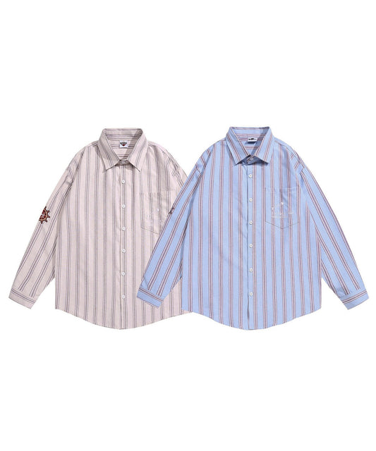【HOOK -original- 】配色ストライプワンポイント刺繍長袖シャツ