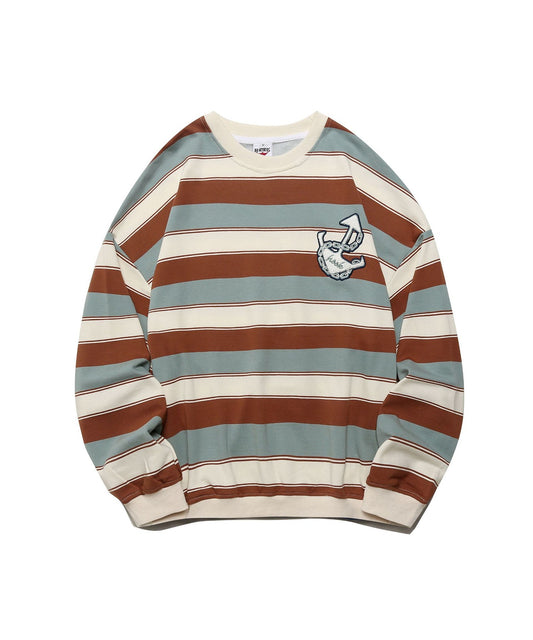 【HOOK -original-】レトロ調フック刺繍入りマルチボーダースウェット