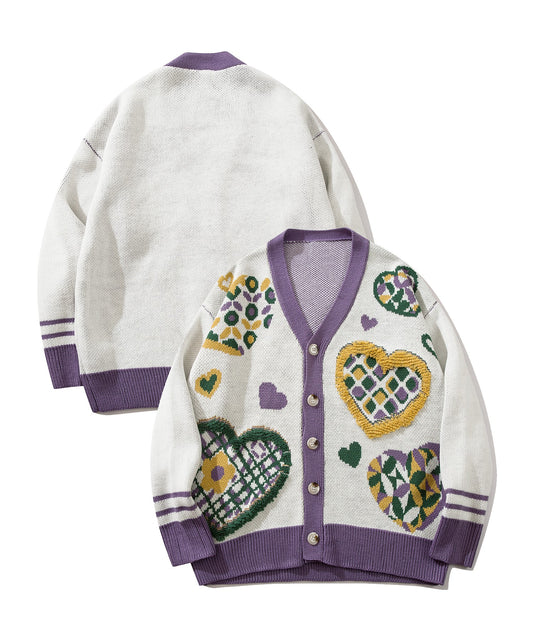【HOOK -original- 】ブロックチェックハートパッチ ワッフル編みクレイジーステッチVネックカーディガン