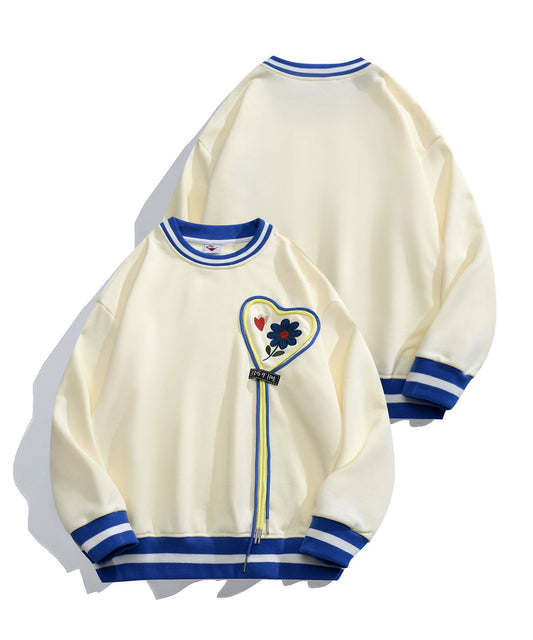 【HOOK -original- 】レトロ調花刺繍ハート紐デザインスウェット