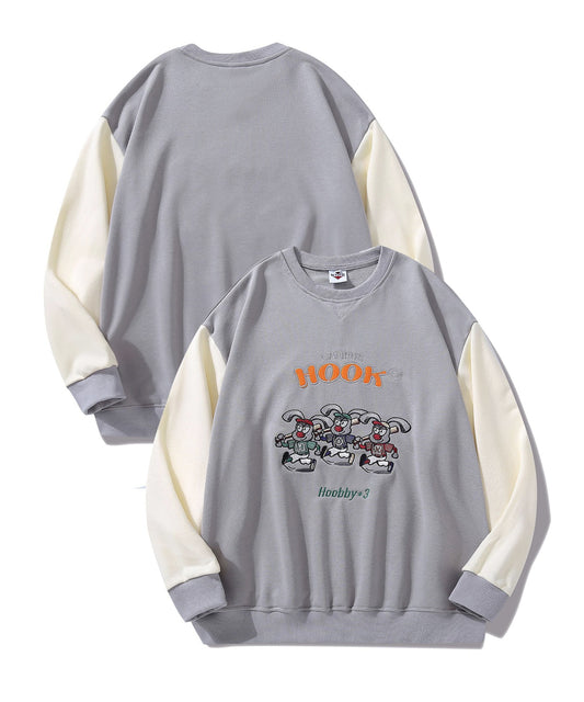 【HOOK -original-】アメカジカートゥーンキャラクター刺繍袖配色スウェット