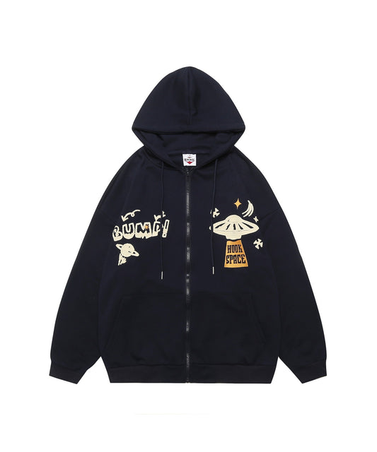 【HOOK -original- 】個性派宇宙サガラ刺繍前開きジップパーカー