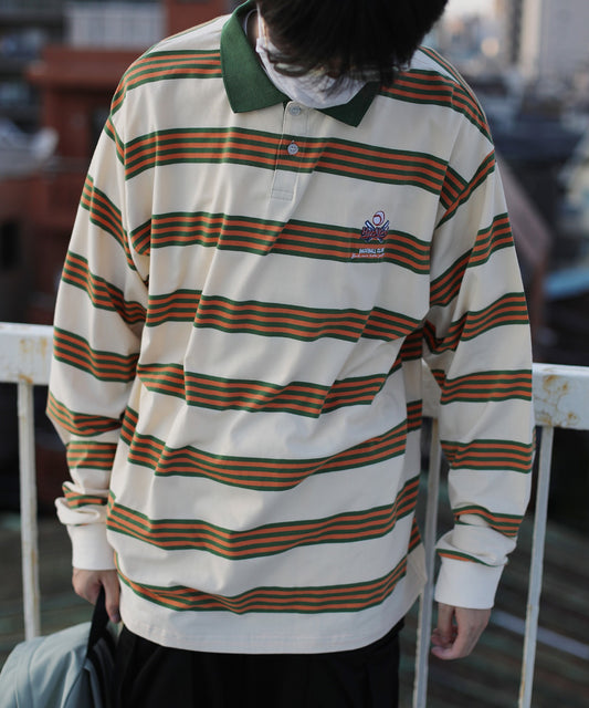 【HOOK -original- 】アメカジワッペン刺繍配色ボーダーポロシャツ