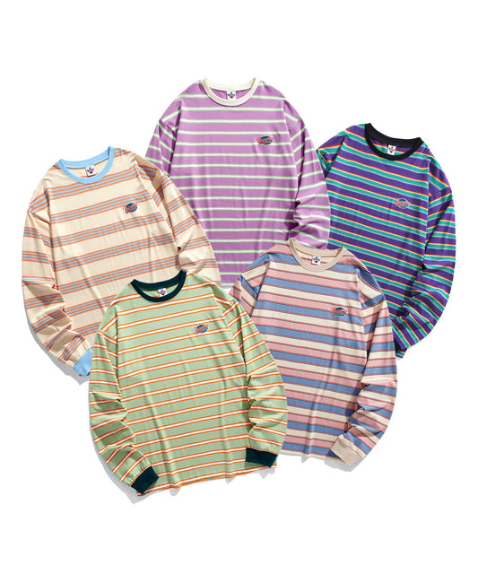 【HOOK -original- 】アメカジワッペン刺繍配色ボーダーリンガーロングTEE