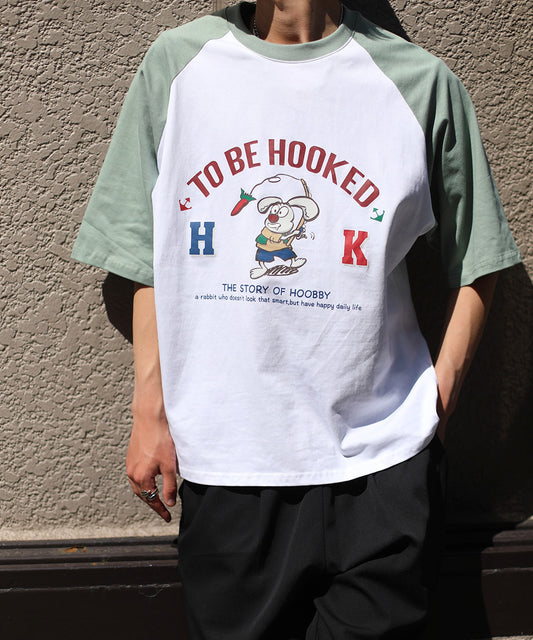 【HOOK -original- 】アメカジイラストプリントラグランスリーブ半袖TEE