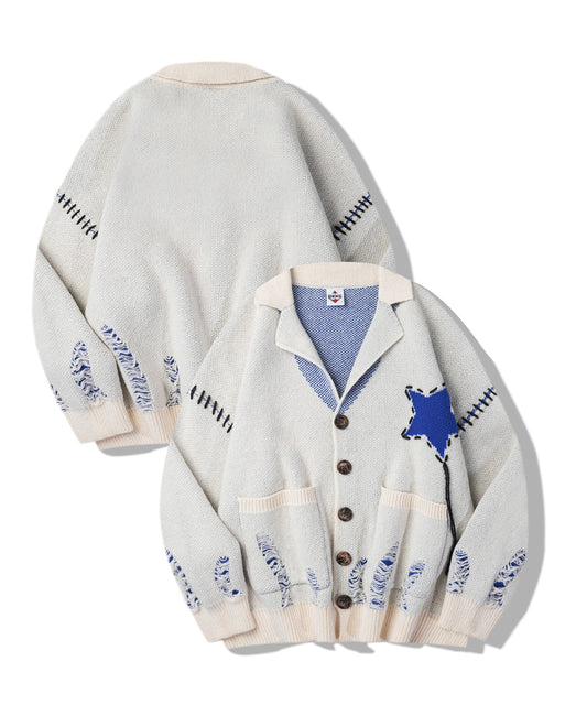 【HOOK -original- 】テーラードジャケット風オーバーニットカーディガン 裾ダメージ加工