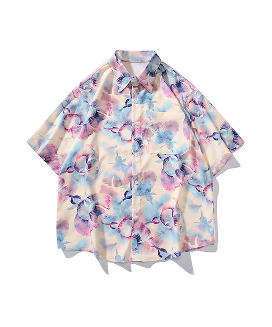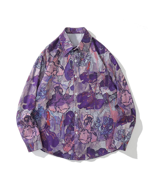 【HOOK】古着風総柄デザイン 長袖シャツ