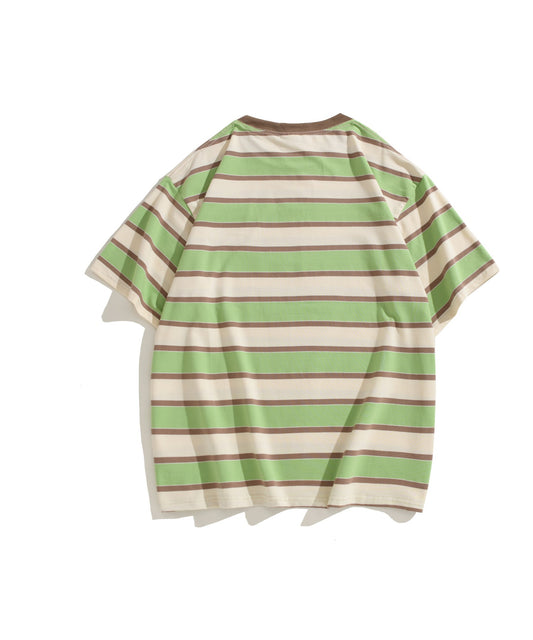 【HOOK -original- 】ワッペン刺繍入り配色ボーダー半袖TEE