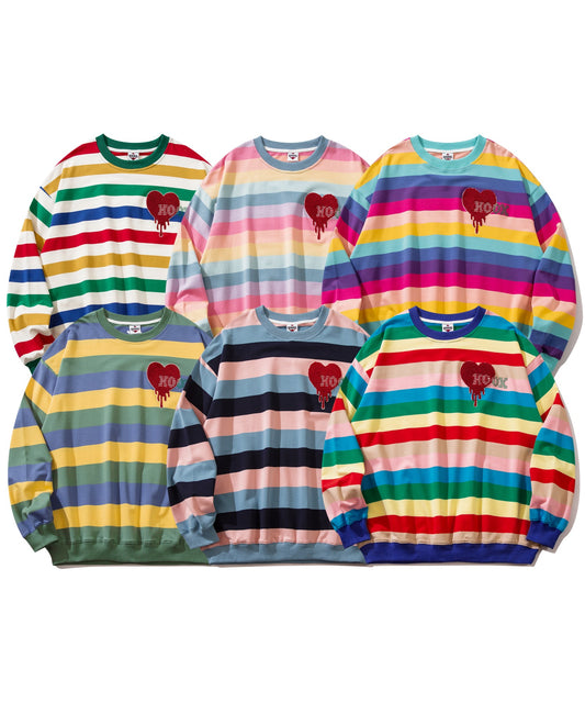 【HOOK -original- 】溶けるハート刺繍レインボーボーダーリンガースウェット