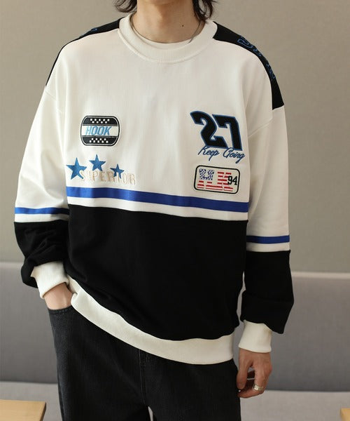 【HOOK -original- 】レーシングワッペン刺繍配色切り替えスウェット