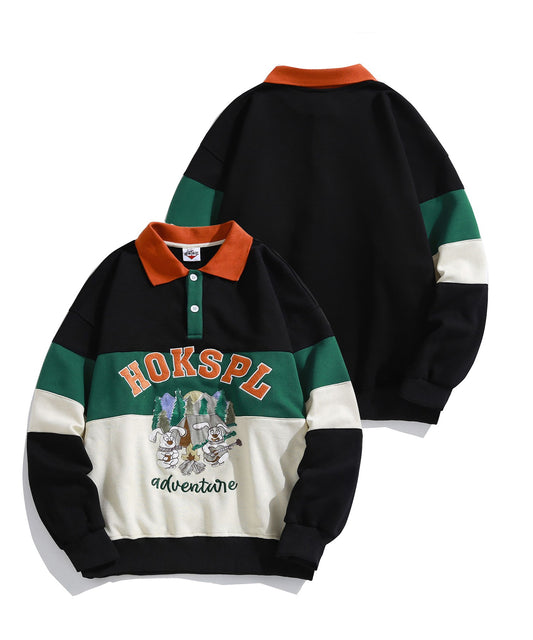 【HOOK -original- 】アメカジカートゥーンキャラクター刺繍袖配色切り替えポロスウェット