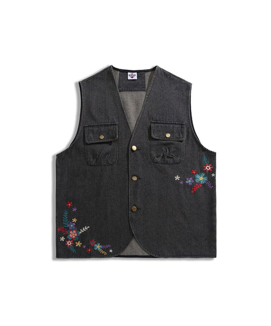 【HOOK -original- 】レトロ調花刺繍vネックデニムベスト