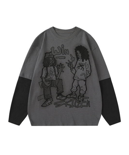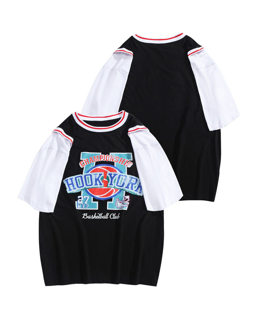 【HOOK】ストリートプリント袖バイカラー切り替えTEE