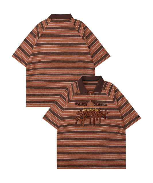 HOOK -original- 古着風ストライプ総柄半袖ビッグシャツ