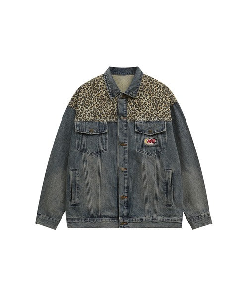 HOOK -select- レオパード切り替えウォッシュデニムジャケット