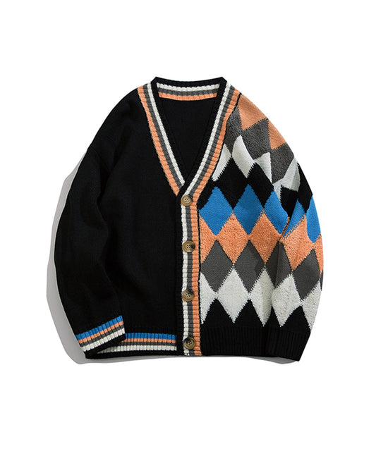 【HOOK】アーガイル幾何学模様リンガーカーディガン