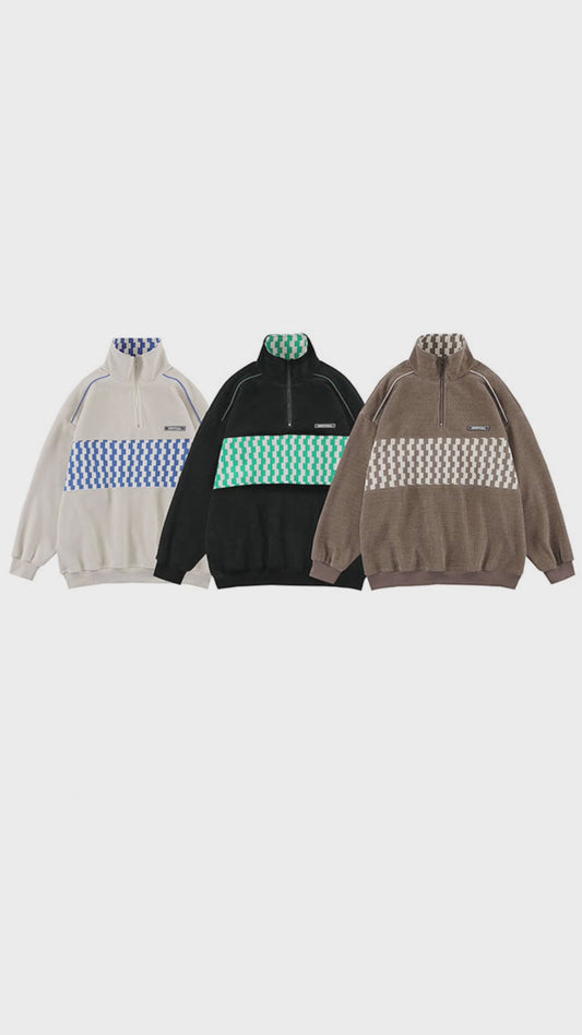 【HOOK】 2WAY襟 切り替えハーフジップトレーナー
