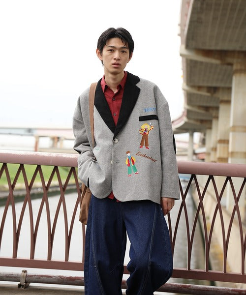 HOOK -original- レトロ調人物刺繍異素材襟テーラードジャケット