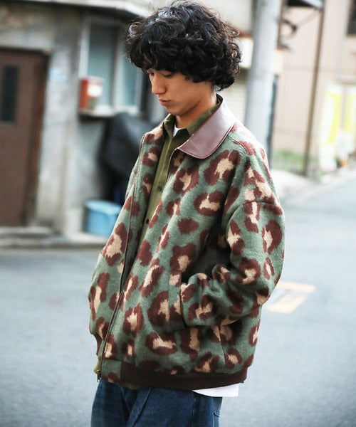 HOOK -original- レトロ古着風 PU襟レオパード調メルトン風ジャケット
