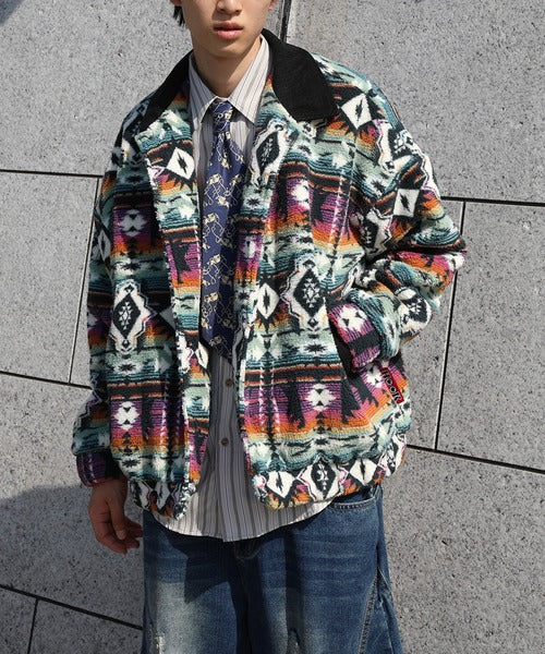 HOOK -original- 民族風幾何学模様ボアジャケット