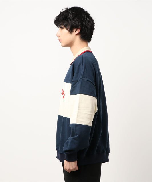 【HOOK】アシンメトリー切り替えポロシャツ風スウェット