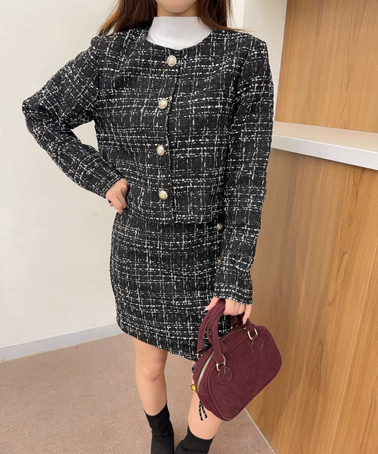 【Jasmine】ツイードノーカラージャケット+ミニスカート