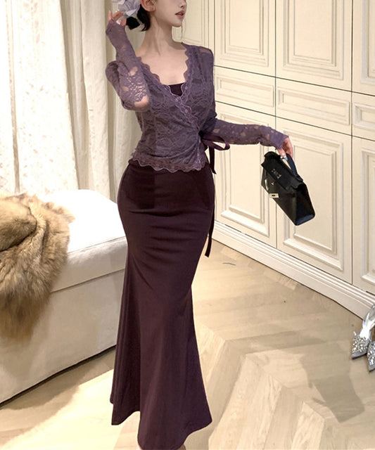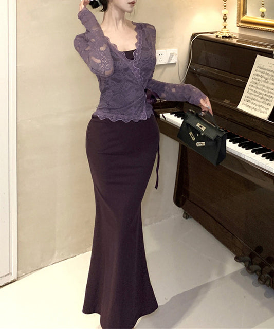 Sold out【Jasmine】シアーレーストップス+スウェットキャミワンピース