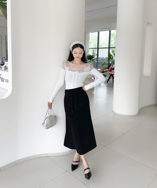 【Jasmine】袖リボンメロウシアーレースインナートップス