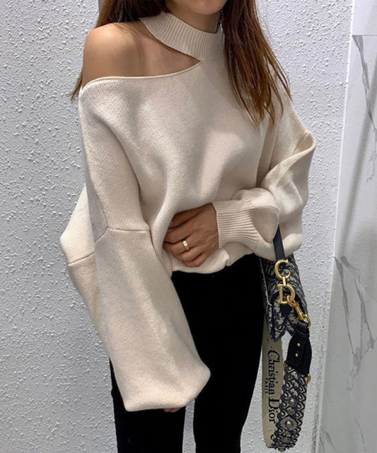 【Jasmine】ワンショルハイネックセクシーニットトップス
